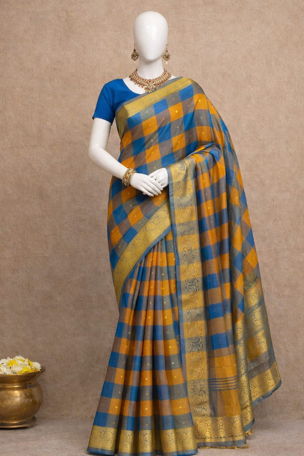 Pure Cotton Kattam Saree with Heritage Zari Border