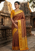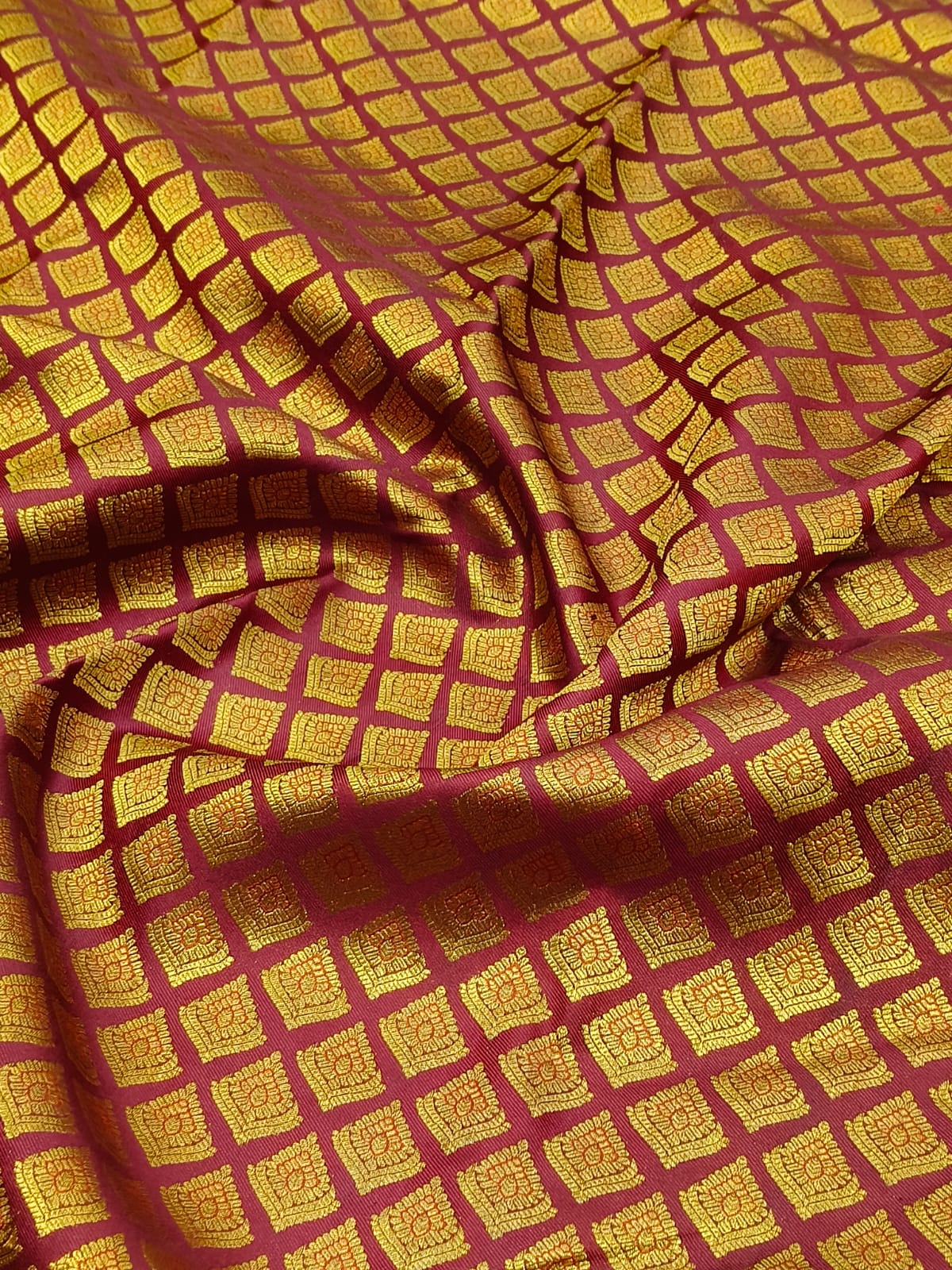 Maroon & Golden Kanchipuram Silk Saree with Diamond Zari Motifs
